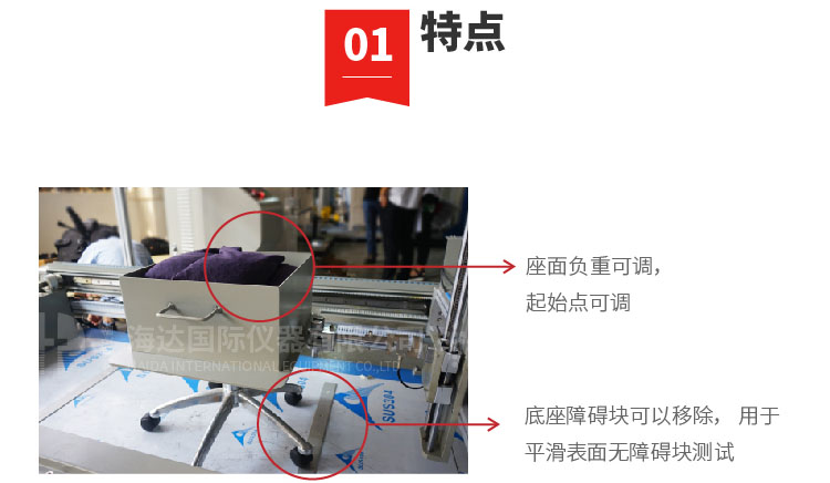 本機適用於所有帶腳輪或椅輪的辦公椅(yǐ),評核腳輪及椅框對於抵受椅子前後移動所引起的疲勞壓力及磨損能力。 設計標(biāo)準:Bifma5.1 第17節;Bifma 5.5 第8 節;Bifma 5.9 第11節 | ||