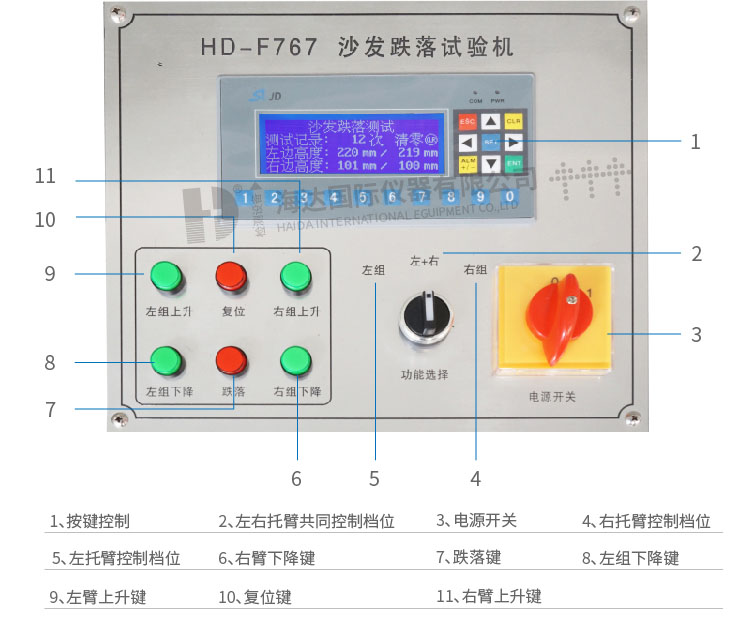 沙發(fā)跌落測試儀HD-F767適用於測試沙發等產品在搬運或連輸過程中,發(fā)生碰撞或受墜落後之受(shòu)損(sǔn)情況(kuàng),從而評估其整體的耐衝擊(jī)強度。 1、評估其整體的耐衝擊強度。 2、測試儀可以執行降一側或整個抬起拖放 3、抬起高度可調75mm-300mm 設(shè)計標準:En4875 | ||