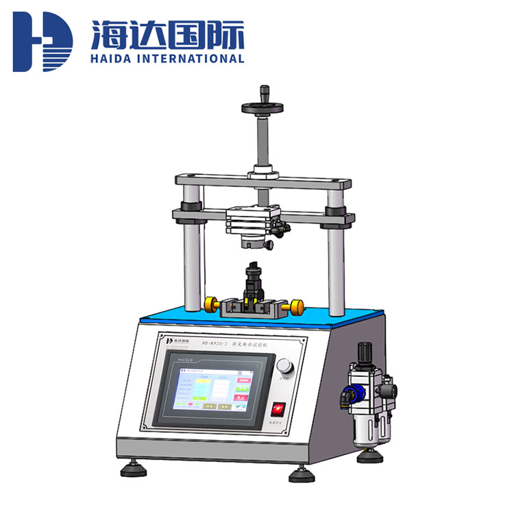 1.機殼采(cǎi)用A3鋼板,使用精密激光切割及數控折床彎折、焊接(jiē)成型,附著金屬(shǔ)灰與光澤藍配色(sè)的烤漆塗(tú)裝; 2.下夾具可調,可普遍適用於不同(tóng)尺寸的開關; 3.卡塊可做0-180°的正反旋轉測試,配有旋(xuán)鈕固(gù)定(dìng)開關按鈕,可避免操作時(shí)出現打滑,脫落等情況; 4.用戶可通(tōng)過(guò)調節(jiē)移動(dòng)橫梁位置來(lái)調節卡塊的高度位(wèi)置,以適應不同規格大小的旋鈕開關; 5.每工位配置4個電源插(chā)孔,可做樣品的通電設置,通過(guò)觸控屏預設參數來(lái)測定開關通電情況(kuàng)下的疲勞次數; 6.導(dǎo)通線采用香蕉插(chā)頭快速插拔,有效保護電線的使(shǐ)用壽命; 7.自動計數功能、斷電自動保存數據; 8.控(kòng)製器搭載自動(dòng)檢(jiǎn)測試(shì)樣(yàng)損壞的功能,自動記錄樣品損壞時的測試次數(shù); 9.控製器采用(yòng)我司自主研發測試軟件,可完成參數設定、運行狀態控(kòng)製、數據收集; 10.針對不同用戶(hù)測(cè)試需求,可提供定(dìng)製化服務。