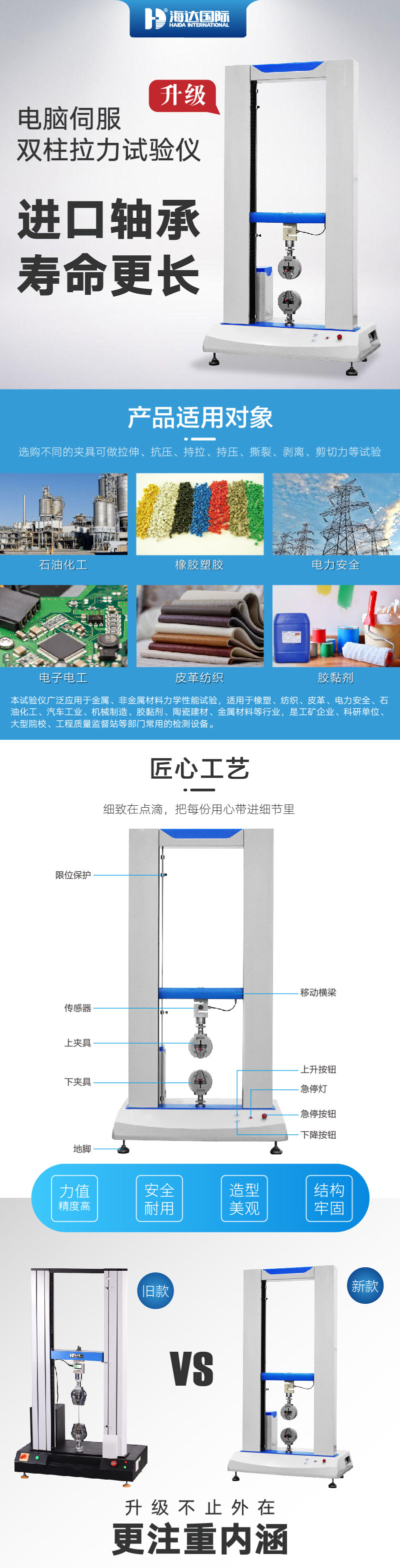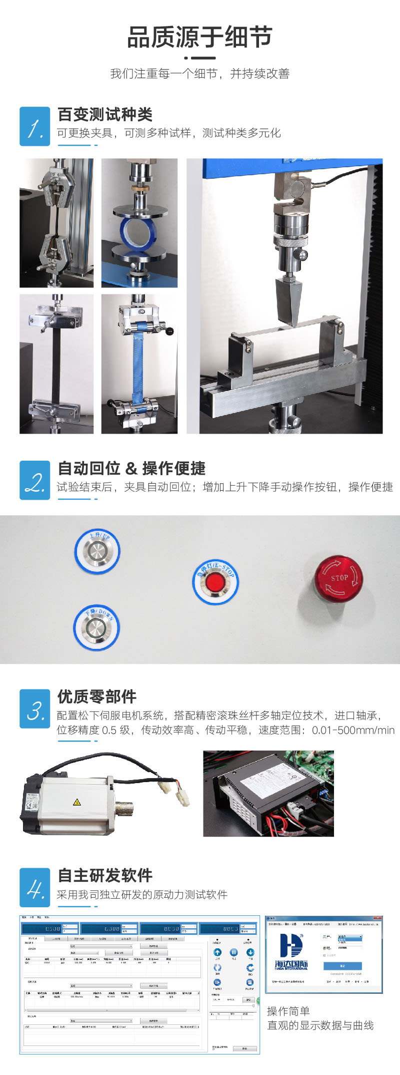 多功能材料拉力試驗機廣泛應用於各類(lèi)五金、金屬、橡(xiàng)塑(sù)料、鞋(xié)業、皮革、服裝、紡織、絕緣體、電線電纜、端子等(děng)各類材料,測試其拉伸、撕裂、剝離、抗(kàng)壓、彎曲抗剪力、三點抗折……等各項物性測試性能(néng) 設計標準(zhǔn):GB/T16491、GB/T1040、GB/T1041、GB/T8804.1-2、GB/T8808、GB13022 | ||