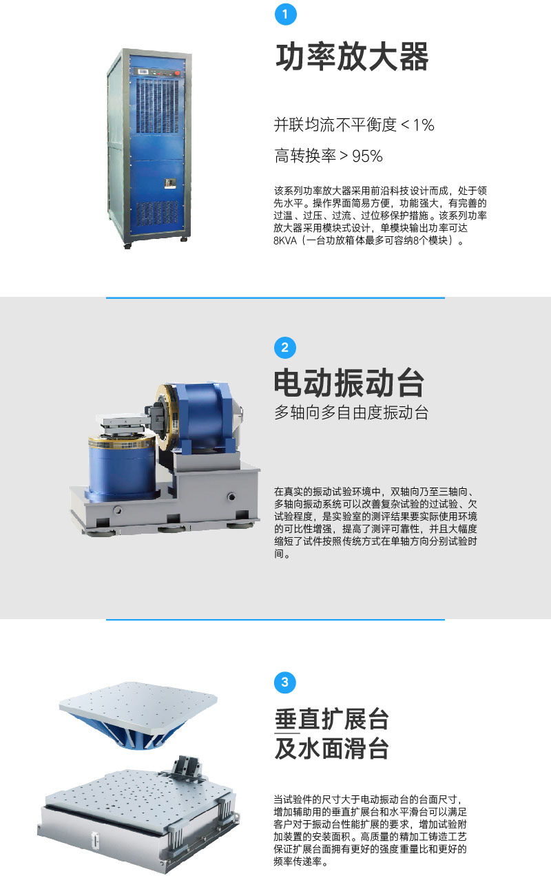 係統型號 HD-G826-300 HD-G826-600 HD-G826-1000 HD-G826-2000 HD-G826-3000 HD-G826-5000 正弦推力 2.94kN 5.88kN 9.8kN 19.6kN 31.36kN 53.9kN 頻率範圍 5~4000Hz 5~3500Hz 5~3000Hz 5~2500Hz 5~2500Hz 5~2500Hz 位移空間 25.4mm 51mm 51mm 51mm 51mm 51mm 速度範圍 0-2m/s 加速度 981m/s² 動圈直徑 150mm 運動部件等效質量 3kg 6kg 10kg 22kg 32kg 55kg 一階共振(zhèn)頻率(lǜ) 2800Hz 3000Hz 2500Hz 2400Hz 2100Hz 2000Hz 台(tái)麵螺釘尺寸(標準(zhǔn)) M8 M8 M10 M10 M10 M12 軸向隔振頻率 <3Hz 載荷 120kg 300kg 300kg 300kg 500kg 1000kg 功放型號 VSA-H402A(300) VSA-H802A(600) VSA-H123A(1000) VSA-H243A(2000) VSA-H323A(3000) VSA-H563A(5000) 輸出(chū)功率 4 8 12 24 32 56 信噪比(bǐ) >65dB 額定輸出電壓 120Vrms 功放(fàng)功率 >95% 係統保護 具有多種(zhǒng)性能保護(hù) 風機型號 PBL-W03(300) PBL-W03(600) PBL-W03(1000) PBL-W03(2000) PBL-W03(3000) PBL-W03(5000) 風機功率 0.75kW 4kW 4kW 7.5kW 15kW 15kW 風量(liàng) 0.2m³/s 0.3m³/s 0.356m³/s 0.68m³/s 0.66m³/s 1.36m³/s 風壓 0.015kgf/cm² 0.048kgf/cm² 0.058kgf/cm² 0.059kgf/cm² 0.075kgf/cm² 0.08kgf/cm² 風管直徑 120mm 200mm 係統工作環境要求 HD-G826-300 HD-G826-600 HD-G826-1000 HD-G826-2000 HD-G826-3000 HD-G826-5000 溫度 0~40℃ 濕度 0~90%,不(bú)結霜 電(diàn)源要求 3相AC,380V±10%,50Hz,7kVA 3相AC,380V±10%,50Hz,16kVA 3相AC,380V±10%,50Hz,26kVA 3相AC,380V±10%,50Hz,40kVA 3相AC,380V±10%,50Hz,65kVA 3相AC,380V±10%,50Hz,90kVA 壓縮空氣要求 0.6Mpa 選購設備:1、水平滑(huá)台 2、移動(dòng)裝置 3、垂直擴展台麵 4、隔熱板 5、夾(jiá)具 | ||