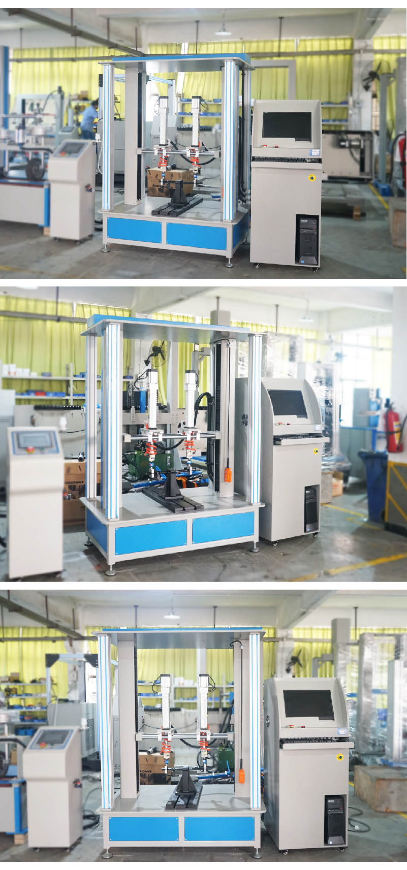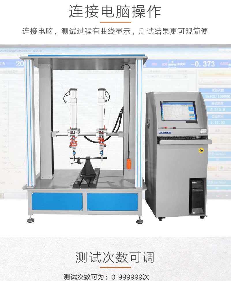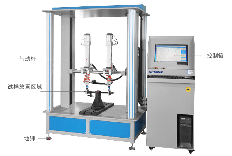 滑板車車把動(dòng)態疲勞試驗機HD-J247A-S模擬自行車在實際騎(qí)行過程中,在不同的路況下,車把組件會受到人手給予的(de)不同方向的力,尤其是在較顛簸路麵上(shàng)騎行時,受到的力就比較大和頻繁,因此車把(bǎ)組件的(de)質量好壞關係到整個車子的使用安全性和使用方(fāng)便快捷性。本試驗機是(shì)根據EN14764、EN14766和EN14781相(xiàng)關疲勞(láo)試驗相關標準設計,整個試驗係統通過計算機自動控製,力量(liàng)的施加係統(tǒng)采用力閉環控(kòng)製,當施加在車把上的試驗力達(dá)到(dào)設定的力(lì)量時自動返回換向。 設計標準:滿足ISO 4210-5-2014 (ISO標準) 4.9 一和二階段加載方式 試驗方法:試驗時將車把(bǎ)組件按照標準規定的方法固定在試驗機上,加載橫梁的高低位置可以通過手動調節來適應車把立管的大小;將車把立管(或假示把立管)固定在專用夾具上,調整加載氣缸的上下、左右位置,使加載夾具可以剛好裝配在(zài)把橫管上,固定好各個部分。在計算機上設定好試驗要求的試驗力值、次(cì)數(shù)。調整好允許車把的Z大變形量,超過此變形量後機台會自動停止(zhǐ)測試;啟動試驗程序開始測試,試驗達到設定次數或試件損壞(huài),機台(tái)自動停止(zhǐ)測試並保留試驗結果。 |